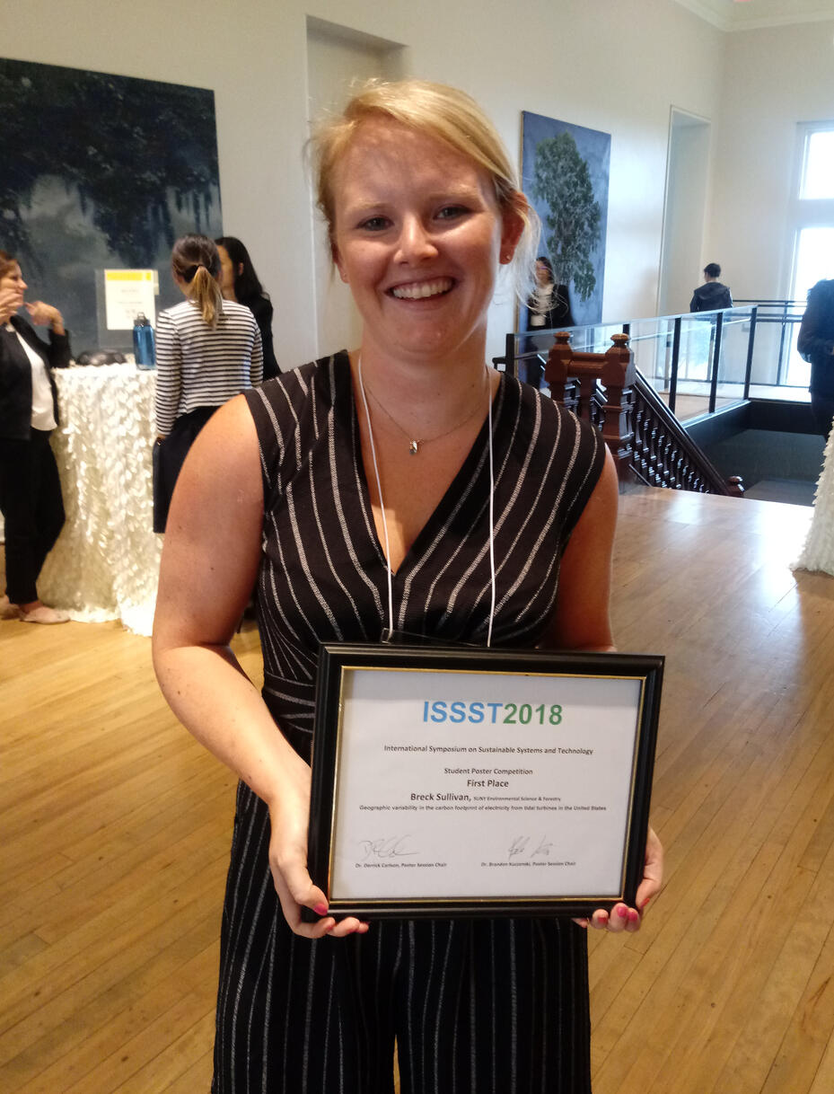 5/2/2018 - Dynta Munardy, who is advised by Dr. Fortier and funded by a Fulbright fellowship, gave a formal presentation of her thesis and passed her thesis defense, making her the second Fortier research group graduate! Her thesis is titled "Life cycle assessment and techno economic analysis of electricity from community-based bamboo gasification in a rural and remote island of Indonesia."4/26/2018 - Dr. Fortier gave an oral presentation on "The Necessity of Geospatial Data in Calculating the Life Cycle Environmental Impacts of Energy Systems" at EnerGIS 2018 in Canonsburg, PA.4/24/2018 - Breck Sullivan presented a poster on her thesis research at the SUNY ESF Spotlight on Student Research, which won third place among all graduate student posters. On the same day, Breck was also awarded as the 2017-2018 Outstanding Master's Degree Scholar in the Graduate Program in Environmental Science at SUNY ESF!4/14/2018 - Dr. Fortier judged engineering research posters at the Collegiate Science and Technology Entry Program (CSTEP) Statewide Student Conference in Bolton Landing, NY.4/9/2018 - Breck Sullivan, who is co-advised by Dr. Fortier and Dr. Malmsheimer in the Graduate Program in Environmental Science at SUNY ESF, gave a formal presentation of her thesis and passed her thesis defense, making her the first Fortier research group graduate!