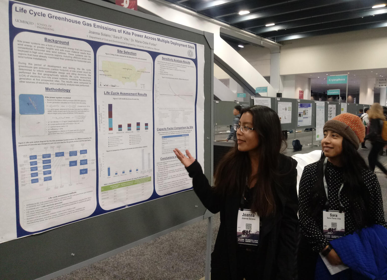 4/9/2021 - Dr. Fortier gave an invited lecture at the 2021 Energize Merced event organized by UC Merced's Solar Energy Association, titled "How do you really mitigate climate change with sustainable energy?".3/23/2021 - GERLCA PhD student Alyssa Pfadt-Trilling was awarded the NSF Graduate Research Fellowship! Well-deserved congratulations to Alyssa!3/22/2021 - A news item is now available on Dr. Fortier's NSF CAREER award here!3/3/2021 - Dr. Fortier gave a guest lecture for ENG 130 Writing to Save the Planet at UC Merced, titled "How do you really mitigate climate change with sustainable energy?".3/1/2021 - Our study titled "Life cycle greenhouse gas emissions of ethanol produced via fermentation of sugars derived from shrub willow (Salix ssp.) hot water extraction in the Northeast United States" is now published in Biotechnology for Biofuels. The paper's first author, Dr. Obste Therasme, now an assistant professor at SUNY ESF, was a PhD student on whose committee Dr. Fortier served when the study began. Congratulations to Dr. Therasme!2/26/2021 - Dr. Fortier's proposal to NSF "CAREER: Geospatial life cycle climate change impacts of solar and ocean renewable energy systems" was awarded!2/26/2021 - Dr. Fortier gave an invited seminar titled "Climate change impacts of energy from waste sources" for the Environmental Engineering Sciences graduate seminar at the University of Florida.1/8/2021 - Our study titled "Climate change impacts of electricity generated at a waste-to-energy facility" is now available in Environmental Science & Technology. GERLCA PhD student Alyssa Pfadt-Trilling is the first author, and her undergraduate capstone advisor, Dr. Timothy Volk (SUNY ESF), and Dr. Fortier are coauthors. Congratulations to Alyssa on her second publication!End of Year 2020 Update - We are still working remotely, and our entire team is safe and healthy. We currently have three manuscripts under review, two of which are in their final rounds of minor revisions.12/19/2020 - GERLCA undergraduate student researcher Santiago Cisneros Castillo graduated with his Bachelor's degree in Environmental Engineering from UC Merced. Congratulations, Santiago!12/10/2020 - Our study titled "Greenwashed energy transitions: Are US cities accounting for the life cycle greenhouse gas emissions of energy resources in climate action plans?" is now published in Energy and Climate Change. This is GERLCA PhD student Alyssa Pfadt-Trilling's first publication, and as first author as well!8/17/2020 - Our study titled "Willow Biomass Crops Are a Carbon Negative or Low-Carbon Feedstock Depending on Prior Land Use and Transportation Distances to End Users" is now published in Energies. The paper's first author, Sheng Yang, was a SUNY ESF PhD student on whose committee Dr. Fortier served.7/30/2020 - GERLCA PhD student Alyssa Pfadt-Trilling submitted her second manuscript for publication with Dr. Fortier as coauthor, based on her first dissertation chapter. Alyssa started her degree at UC Merced approximately 6 months prior and is already well on her way towards a productive research career!7/2/2020 - Our study titled "Life Cycle Assessment of Forest Biomass Energy Feedstock in the Northeast United States" is now published in GCB Bioenergy. The paper's first author is Dr. Fortier's former MS student at SUNY ESF, Ryan Quinn, and the corresponding author is Dr. Fortier.6/8/2020 - The GERLCA research group started sharing anti-racism resources and readings on anti-Black racism in STEM and academia internally via email. Black Lives Matter.6/2/2020 - The GERLCA research group welcomes Marvin Prieto, our new undergraduate student researcher through the UC Merced UROC program!5/29/2020 - GERLCA PhD student Alyssa Pfadt-Trilling submitted her first manuscript for publication with Dr. Tim Volk (SUNY ESF) and Dr. Fortier as coauthors. Congratulations on this major milestone, Alyssa!5/20/2020 - Dr. Obste Therasme (now Assistant Professor at SUNY ESF) submitted a manuscript for publication based on his dissertation LCA research coauthored by Dr. Fortier.5/16/2020 - GERLCA undergraduate student researcher Joanna Solano graduated with her Bachelor's degree in Environmental Engineering from UC Merced. Congratulations, Joanna!3/9-3/11/2020 - Dr. Fortier and Dr. Youngwoon Kim traveled to Syracuse NY to coordinate with SUNY ESF collaborators on research supported by their USDA BRDI grant.2/8/2020 - Dr. Fortier gave an invited presentation titled "How do you save the climate using sustainable energy? Figure out where to put it" to the student-organized 2020 Energize Merced event at UC Merced.January 2020 - The GERLCA research group welcomes new Environmental Systems PhD student, Alyssa Pfadt-Trilling, and new postdoctoral researcher, Youngwoon Kim!1/6-10/2020 - Dr. Fortier participated in the Faculty Success Initiative Extramural Funding Fellowship program at UC Merced.12/13/2019 - Dr. Fortier and two undergraduate student researchers, Joanna Solano and Sara Perez Vite, are presenting a poster titled "Life cycle greenhouse gas emissions of kite power across multiple deployment sites" at the 2019 Fall Meeting of the American Geophysical Union (AGU) in San Francisco, CA.