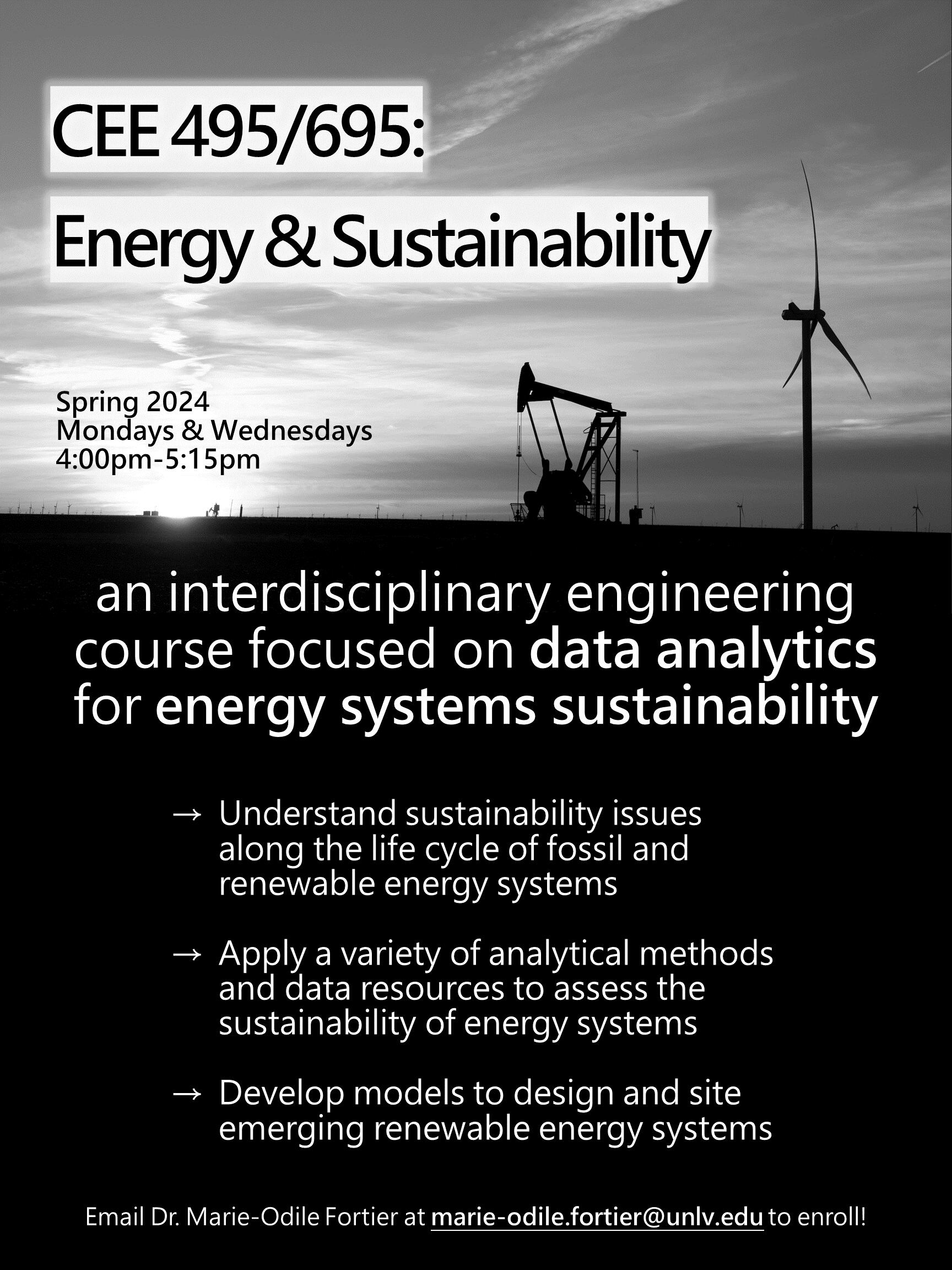 CEE 495/695: Energy and Sustainability (Spring 2024 - next offering in Spring 2026)
